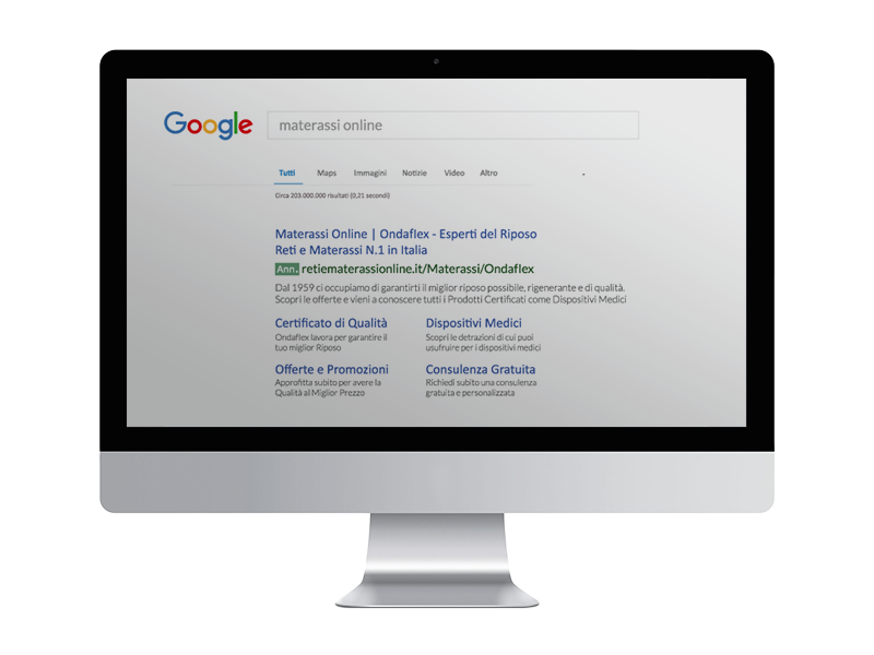 Su Google le persone cercano cosa fare, dove andare e cosa comprare. Il tuo annuncio può essere pubblicato su Google proprio nel momento in cui qualcuno cerca un prodotto o servizio simile a quelli che offri.